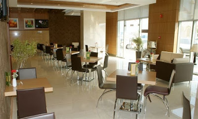 The signage is up and the customers are walking in to the new Faseel Café on the ground floor of the Siji Hotel Apartments. There is public access from the street and hotel apartment access from within.